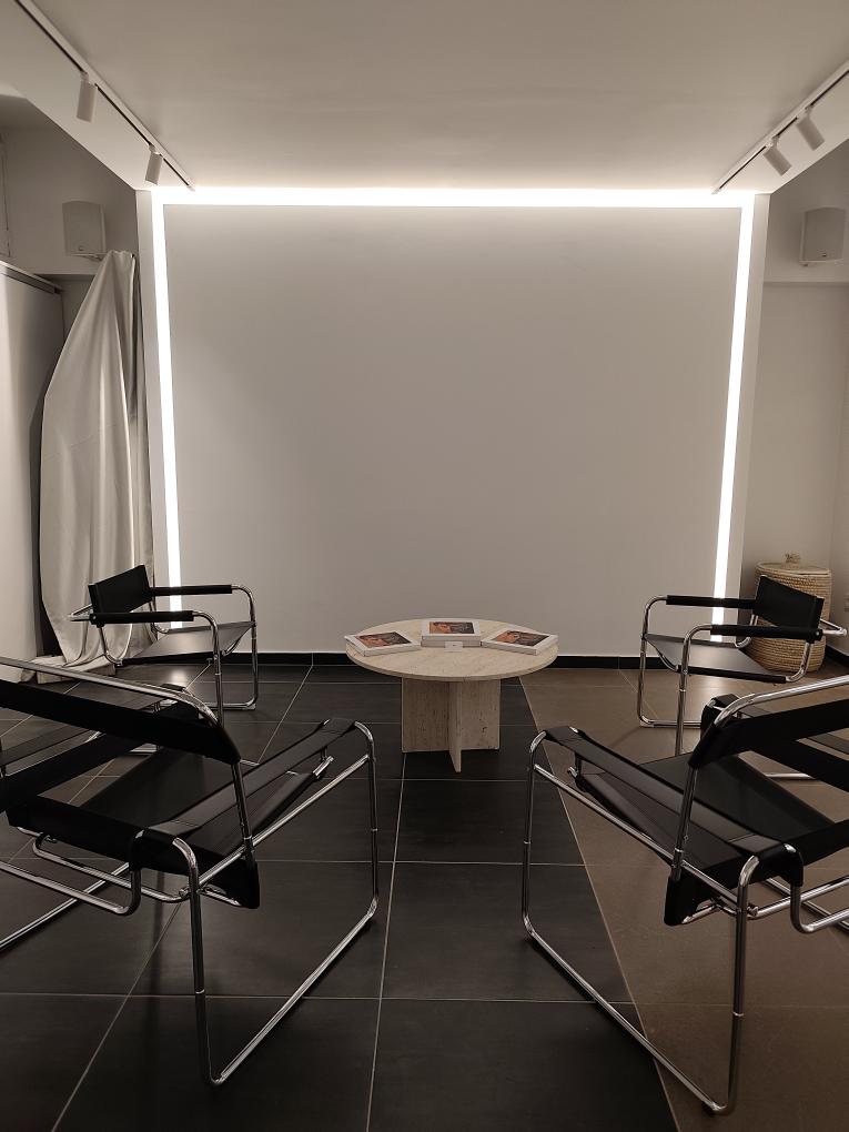 The space is defined by clean lines, open volumes, and a minimalist aesthetic that highlights each artwork while offering flexible arrangements for different projects. Carefully selected materials and thoughtfully designed lighting create an inviting atmosphere, enhancing the visitor experience and emphasizing the details of every piece on display.